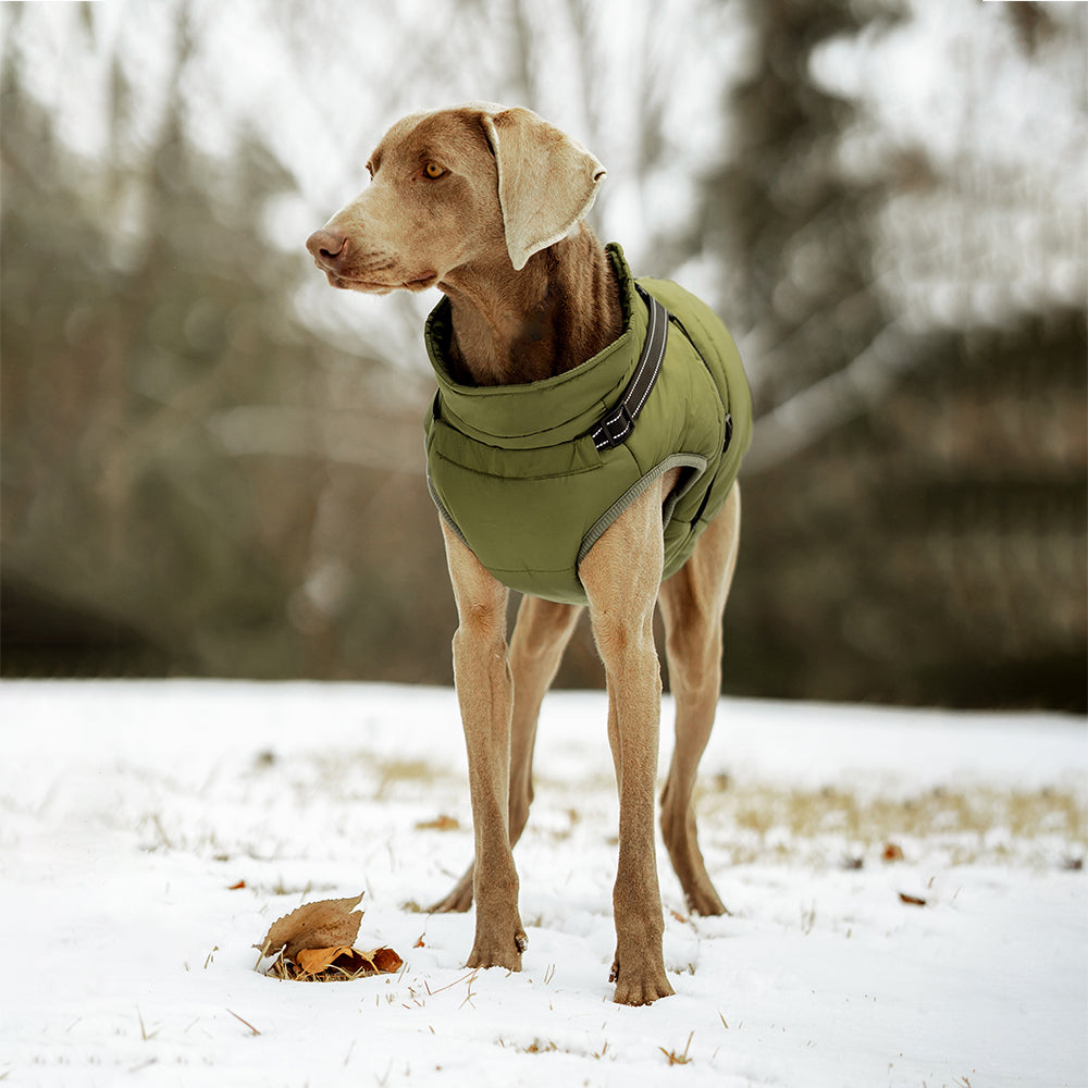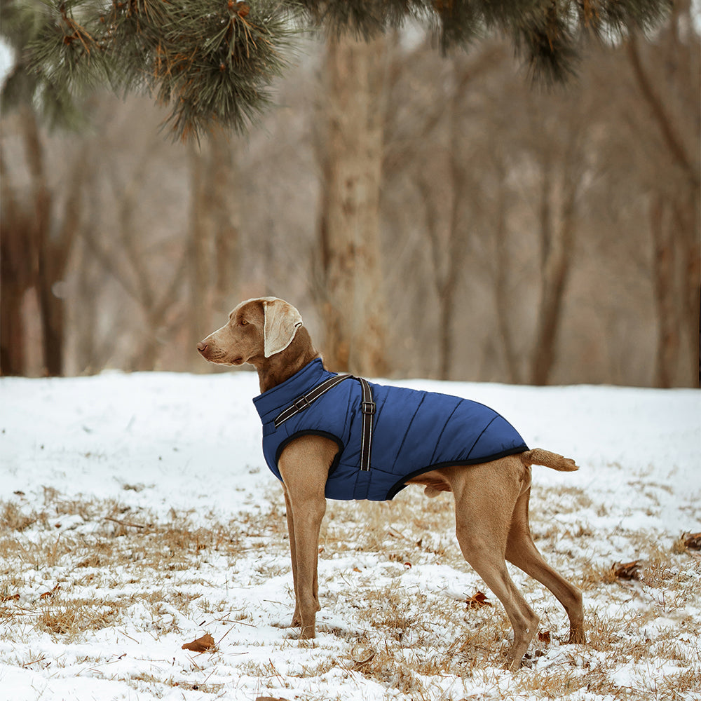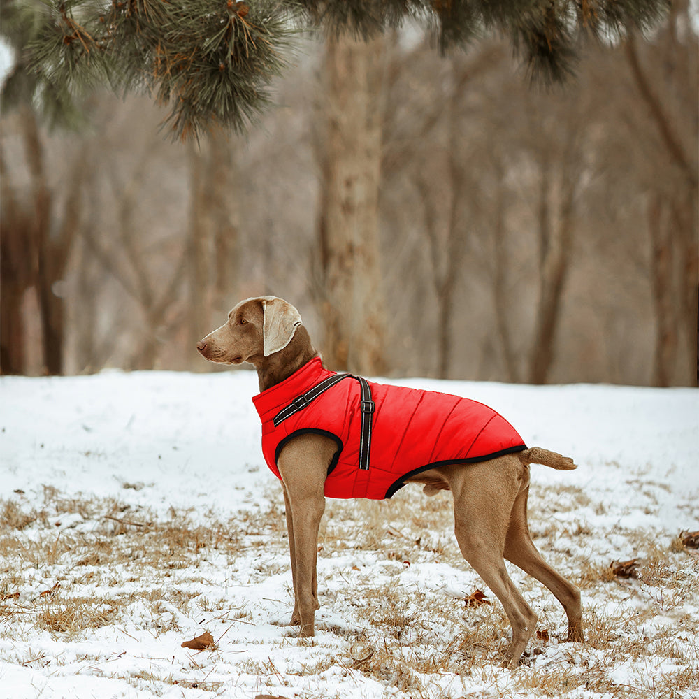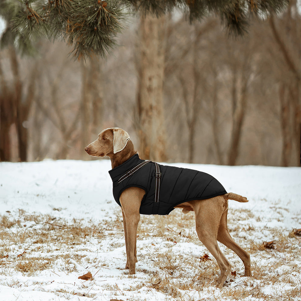 Dank des 100 % wasserdichten Obermaterials bleibt dein Hund auch bei starkem Regen oder Schneefall trocken. Die spezielle Beschichtung weist Wasser zuverlässig ab und schützt gleichzeitig vor Wind und Kälte. So kann dein Hund selbst bei schlechtem Wetter draußen toben, ohne sich zu erkälten oder auszukühlen.